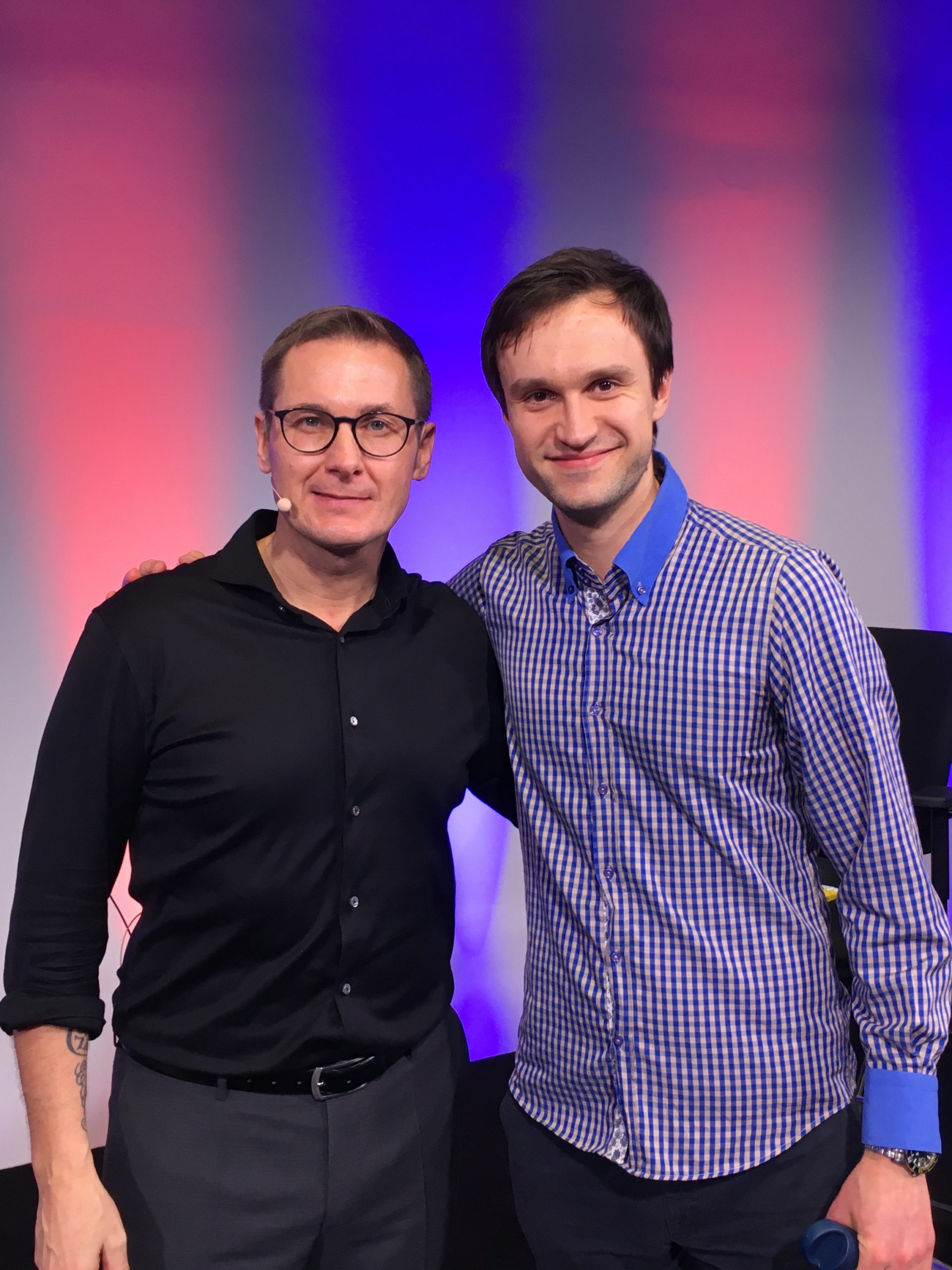 S Ericem Pearlem na Festivalu Evolution těsně předtím, než jsem sdílel svůj příběh na hlavním pódiu.